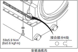 (1) 三菱S6R發(fā)動(dòng)機(jī)油底殼墊片的分割處(4處)涂抹密封劑(Herdite),安裝油底殼墊片。