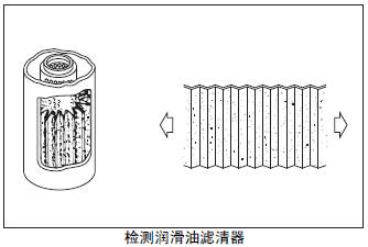 更換潤(rùn)滑油濾清器時(shí),取潤(rùn)滑油(500ml) 作為樣品進(jìn)行檢測(cè),發(fā)現(xiàn)有金屬粉末或其他的異常時(shí),切開(kāi)濾芯進(jìn)一步檢查金屬粉末的顏色和形狀并確認(rèn)原因。