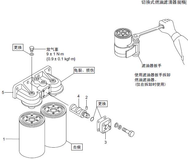 2.1 三菱S6R發(fā)動機(jī)燃油濾清器的解體,檢修,組裝( 紙質(zhì)濾芯)
