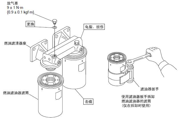 三菱S6R發(fā)動機(jī)燃油濾清器的解體,檢修,組裝( 紙質(zhì)濾芯)