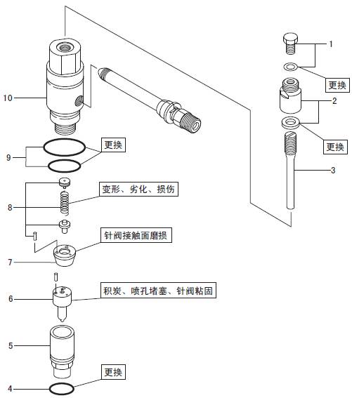 2.3.3 三菱S6R發(fā)動(dòng)機(jī)噴油嘴的清洗和更換