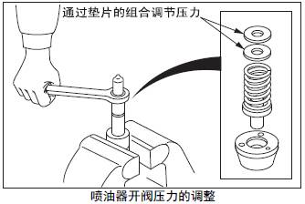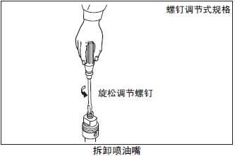 (2) 以大約每秒1次的速度向下壓手柄,檢測(cè)噴油的開始?jí)毫Α2辉跇?biāo)準(zhǔn)值范圍以內(nèi)時(shí)進(jìn)行調(diào)整。