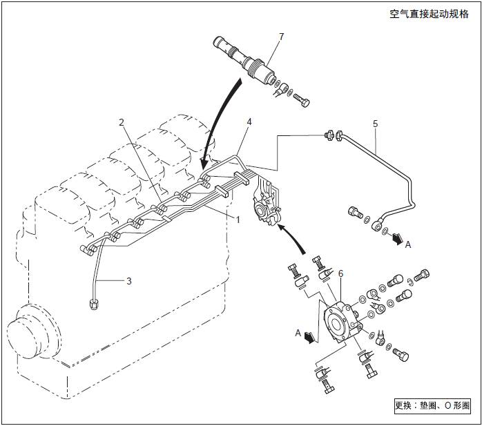空氣管、三菱S6R柴油發(fā)動機起動閥、三菱S6R柴油發(fā)動機分配閥的拆卸