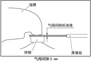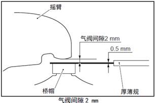 (1) 將0.5 mm的厚薄規(guī)插入在橋帽和搖臂之間。(三菱S6R柴油發(fā)動(dòng)機(jī)氣閥門間隙2 mm)