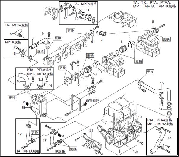 三菱S6R柴油發(fā)動機水泵、恒溫器、水管的拆卸,檢修