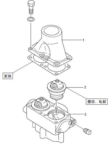 2.3 三菱S6R柴油發(fā)動機缸套冷卻水用、空氣冷卻器用恒溫器的拆卸,檢修