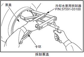 (1) 用水泵拆卸器將固定泵蓋的卡環(huán)拆除,拆下泵蓋。