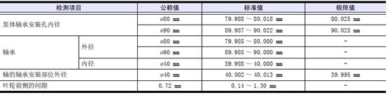 測量水泵泵體和軸的軸承瓦裝配部位、軸承瓦的外徑和內徑。不在標準值范圍內時,更換新品。