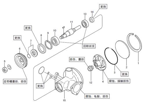 三菱S6R柴油發(fā)動機水泵的解體、檢修
