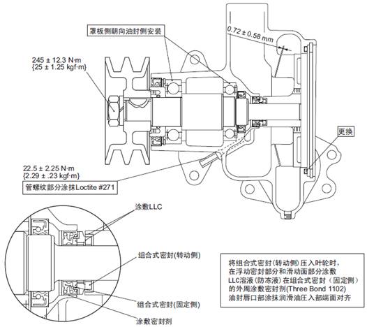 (2) 在組合式密封( 轉動側) 上涂抹LLC。