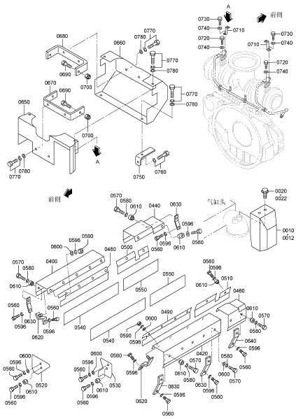 46800 三菱12R發(fā)動(dòng)機(jī)增壓器隔熱罩(FR) 前方 1 |