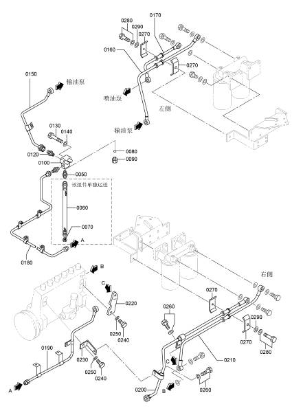 三菱12R發(fā)動(dòng)機(jī)燃油濾清器管路