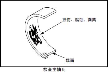 檢查主軸瓦的表面、背面和端面,如有接觸不良、滑動(dòng)損傷、腐蝕、異物嵌入等異常時(shí)更換新品。