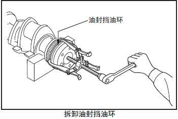 用齒輪拆卸器將三菱S12柴油發(fā)動(dòng)機(jī)油封擋油環(huán)從三菱S12柴油發(fā)動(dòng)機(jī)曲軸上拆出。