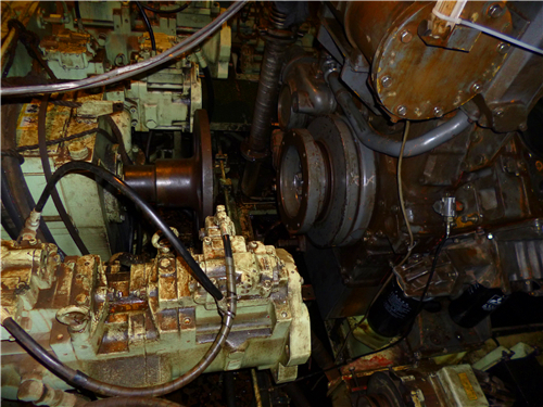 用齒輪拆卸器將三菱S12柴油發(fā)動(dòng)機(jī)曲軸齒輪從三菱S12柴油發(fā)動(dòng)機(jī)曲軸上拆出。