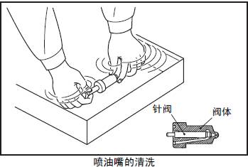 (5) 調(diào)整和清洗后噴霧狀態(tài)不能好轉(zhuǎn)的話,要更換新的噴油嘴。新的噴油嘴涂有防銹劑,最初一定要用清洗油清洗,然后用柴油再次清洗后才能組裝。