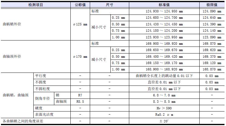 使用加厚尺寸的軸瓦,按照和加厚尺寸軸瓦對應(yīng)的標準值研磨三菱R16柴油發(fā)動機曲軸。
