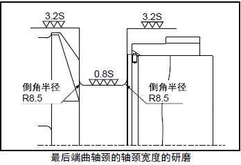 注意研磨時不要改變軸頸端部倒角的半徑。對于表面硬度明顯降低的三菱R16柴油發(fā)動機曲軸,要再進行熱處理并進行磁性探傷檢查。研磨加工后的表面精度均應(yīng)滿足標準值要求。