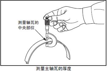 超過極限值時,將主軸瓦上下整套更換。根據(jù)三菱R16柴油發(fā)動機曲軸頸的磨損程度,在三菱R16柴油發(fā)動機曲軸重新研磨使用時,使用加厚尺寸的主軸瓦。