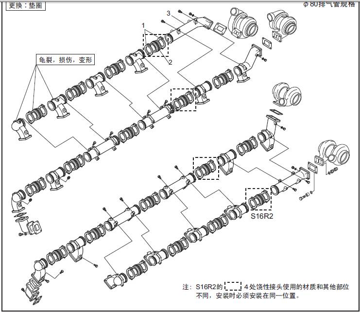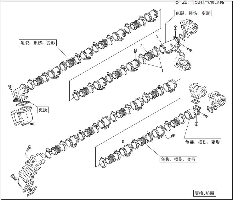 三菱R16柴油發(fā)動機靜壓排氣管規(guī)格 排氣歧管的拆卸、檢測