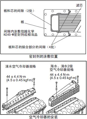 冷卻器芯和板之間的間隙,用信越化學(xué)工業(yè)株式會社生產(chǎn)的KE45-W 或相當?shù)墓柘得芊饽z密封。