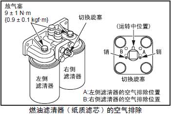 (3) 從放氣塞處排出的燃油不含有氣泡時,按照規(guī)定扭矩旋緊放氣塞。