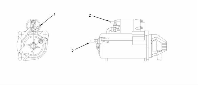 The 12 volt starting motor which shows the electrical connections