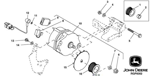 9 RE501634 ALTERNATOR 1 X X X 12V, 55 AMP, (SUB RE506196 AND