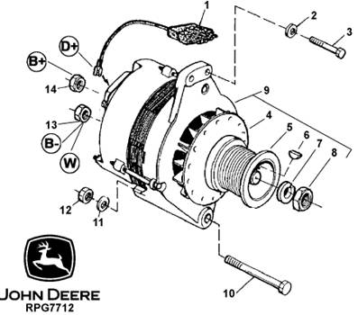 John Deere約翰迪爾強(qiáng)鹿6068 6.8L柴油發(fā)動機(jī)充電發(fā)電機(jī)零件圖冊