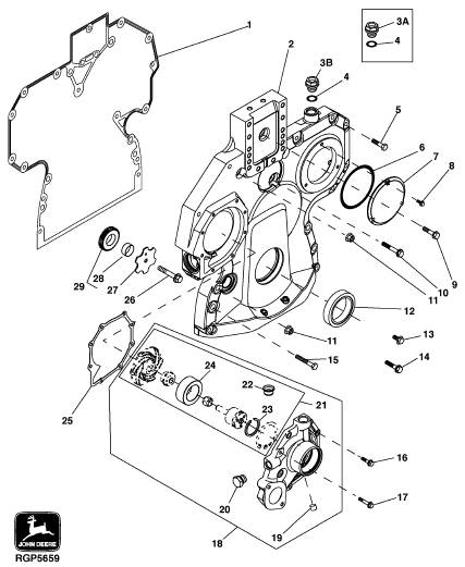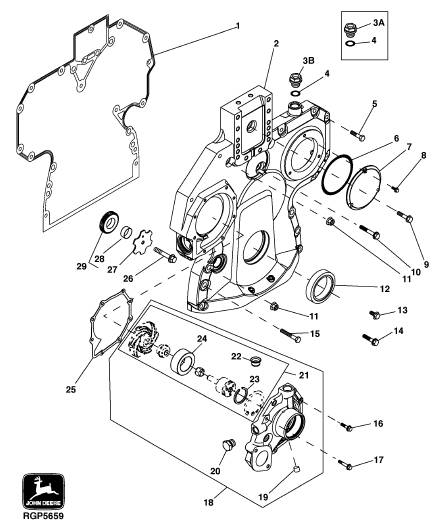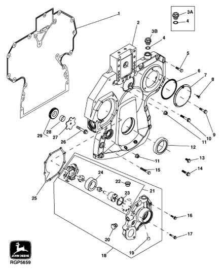 John Deere約翰迪爾強鹿柴油發(fā)動機正時齒輪蓋、水泵、曲軸下惰輪零件圖冊