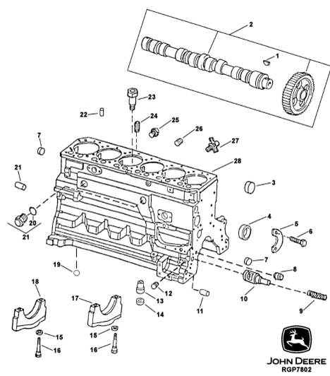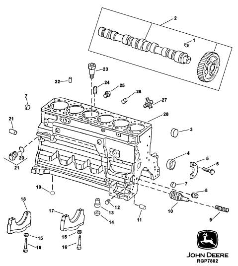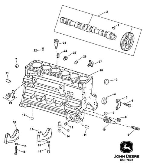 John Deere約翰迪爾強鹿6068 6.8L柴油發(fā)動機氣缸體、曲軸主軸承蓋和凸輪軸零件圖冊