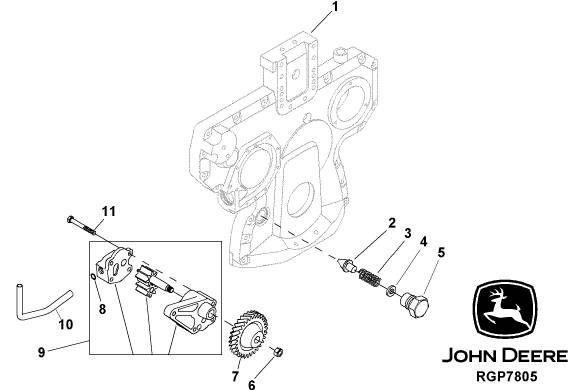 John Deere約翰迪爾強(qiáng)鹿6068 6.8L柴油發(fā)動機(jī)機(jī)油泵和機(jī)油壓力調(diào)節(jié)閥零件圖冊