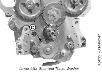 7. Install thrust washer over lower idler gear (C) and shaft.