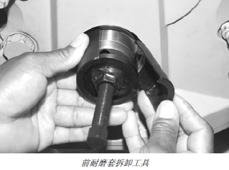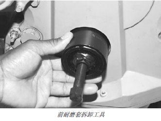 注意: 如果拆卸過程中耐磨套的凸輪緣開始滾動,應(yīng)卸下拉拔器總成,使用更寬爪的夾頭卡住耐磨套。