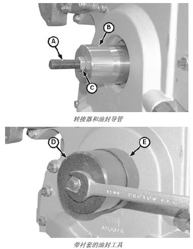 6 導(dǎo)管襯套 (E) 裝在安裝器和油封上。