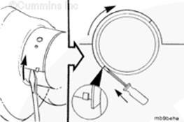 如果使用帶式活塞環(huán)壓縮器,確保帶的內側沒有掛在活塞環(huán)的缺口并折斷活塞環(huán)。