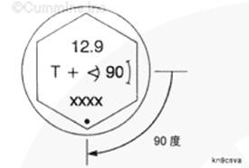 在與螺釘頭部上的小圓點(diǎn)鄰近的缸蓋上做標(biāo)記。此標(biāo)記用來幫助將螺釘擰緊到要求的角度。