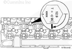 使用服務(wù)軟件(零件號 3823921)檢查所有缸蓋螺釘?shù)拈L度是否正確。