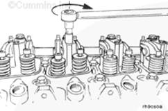 盤動康明斯ISB5.9 G CM2180發(fā)動機(jī)時擺動搖臂;搖臂變緊時,停止盤車。