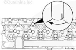 確保缸蓋密封墊與缸體上的孔對正。如果密封墊沒有正確對正,可能導(dǎo)致康明斯ISB5.9 G CM2180發(fā)動機(jī)損壞。