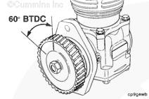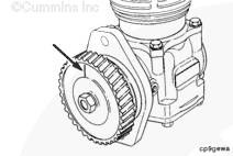 使用 1/2 英寸驅(qū)動頭和康明斯ISB5.9 G CM2180發(fā)動機(jī)盤車工具(零件號 3824591)旋轉(zhuǎn)康明斯ISB5.9 G CM2180發(fā)動機(jī)(順時針,面對減振器),直到 6 號氣缸(針對 6 缸康明斯ISB5.9 G CM2180發(fā)動機(jī))的進(jìn)氣搖臂開始打開進(jìn)氣門。
