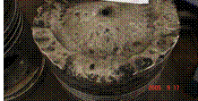 (1)現(xiàn)象:活塞頂部金屬產(chǎn)生層層剝落使頂部厚度逐漸減薄,出現(xiàn)釩腐蝕的麻點(diǎn)或凹坑,大小、深淺不一地分布于活塞頂部,這種現(xiàn)象稱為活塞頂部燒蝕。嚴(yán)重時(shí)可使頂部燒穿。