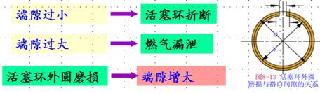 端隙:活塞環(huán)處于工作狀態(tài)時(shí)的開(kāi)口大小。是活塞環(huán)工作時(shí)的熱脹間隙。防止受熱而卡死。