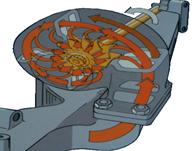 2) 由壓氣機壓力控制旁通閥的開啟與關(guān)閉,從而得到一個簡單的可變流量的渦輪殼,壓力大時,部分發(fā)動機廢氣經(jīng)旁通閥排出,這樣達到即改善低速性能,又避免高速工況汽缸爆發(fā)壓力過高.