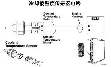 故障原因:在發(fā)動(dòng)機(jī)線束的 22 號(hào)冷卻液溫度信號(hào)觸針上檢測(cè)到的電壓低于 0.21 VDC。