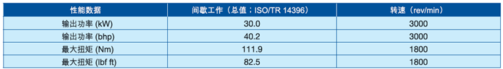 3000 rpm時,功率達30 kW,402 bhp