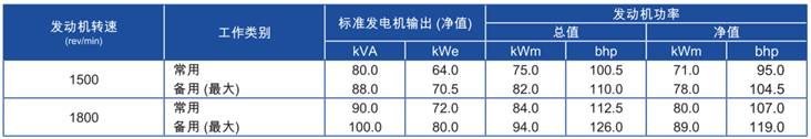 上表所有額定功率數(shù)據(jù)均為ISO/TR 14396/IS0 8528條件下操作時(shí)數(shù)據(jù)。