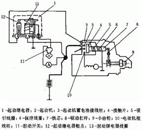 如果齒輪與飛輪齒端相對,不能馬上嚙合,此時(shí)彈簧壓縮,當(dāng)齒輪轉(zhuǎn)過一個(gè)角度后,齒輪與飛輪迅速嚙合。當(dāng)鐵芯移動到使短路開關(guān)閉合的位置時(shí),短路線路接通,吸引線圈被短路,失去作用,保持線圈所產(chǎn)生的磁力足以維持鐵芯處于開關(guān)吸合的位置。