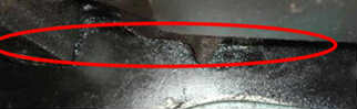 造成此故障的現(xiàn)象:發(fā)動機的飛輪殼開裂(如下圖所示),有時表現(xiàn)的現(xiàn)象為發(fā)動機后部漏油,進一步觀察,主要原因是飛輪殼開裂所致。 造成此故障的原因分析:主要原因是整車傳動系統(tǒng)振動過大,導(dǎo)致飛輪殼被震裂 此故障的維修解決方法:更換飛輪殼、整車傳動軸