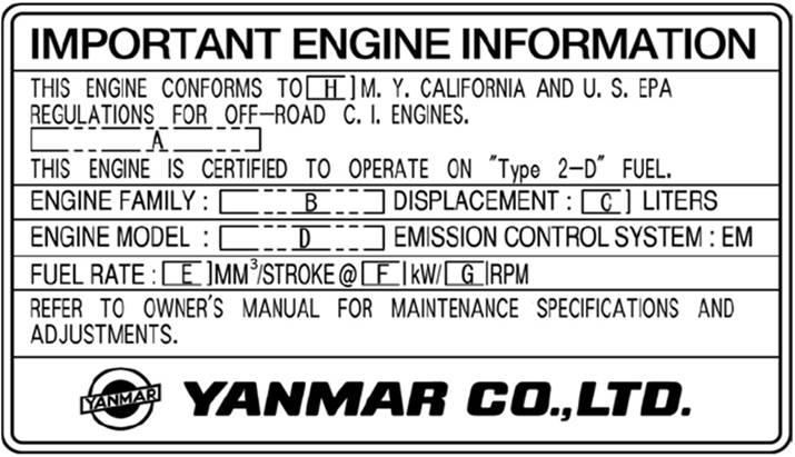 洋馬發(fā)動機EPA以及ARB環(huán)保貼牌